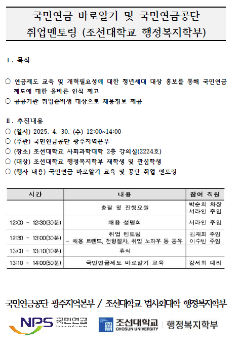 국민연금공단 광주지역본부에서 재학생을 대상으로